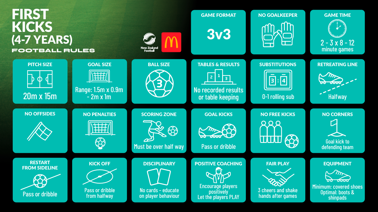 First kicks players are in the FUNdamental Phase of player development and are typically experiencing football or futsal for the first time.